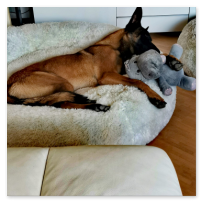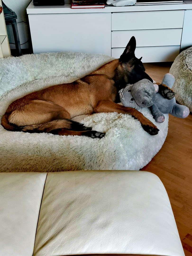 Ich bin Shayano vom blauen Mistral und am 25.09.2021 erblickte ich das Licht der Welt. Mit 10 Wochen zog ich bei Sheila und Joël ein, von da an begann das Abenteuer Leben. Ich bin sehr lernwilig und habe extrem spass beim Arbeiten, sei es Fährten, Unterordnung oder Schutzdienst. Bin auch noch voll die Trüffelnase, mir entgeht keine Knolle. Eine riesen Wasserratte bin ich auch noch, im Sommer gibts nichts schöneres alls mit ein paar Hunde Kumpels die Aare herunter zu schwimmen. Im Büro habe ich an jedem freude, habe nichts gegen gelegentliche Streicheleinheiten.